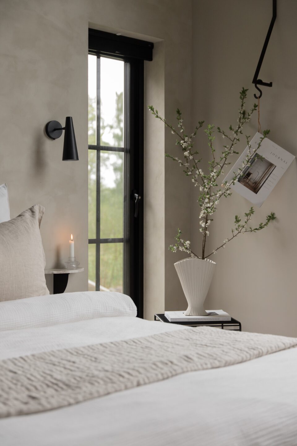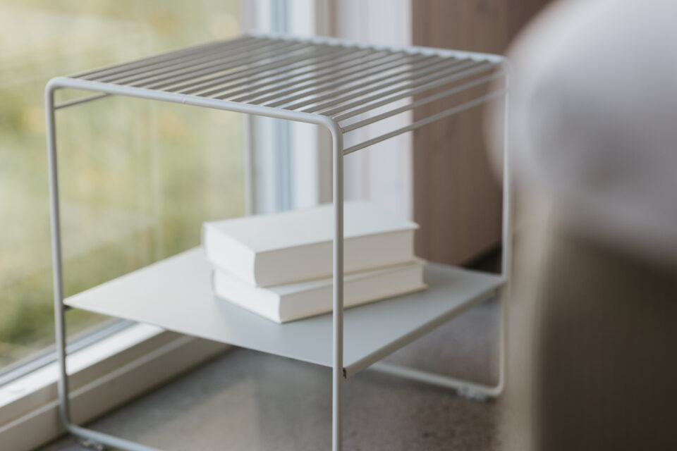 Spirande är en möbel som trivs i de flesta miljöer, både inomhus och utomhus. Hemma hos Mathilda har Spirande fått pryda hallen, badrummet och uteplatsen. Här används möbeln som sängbord.