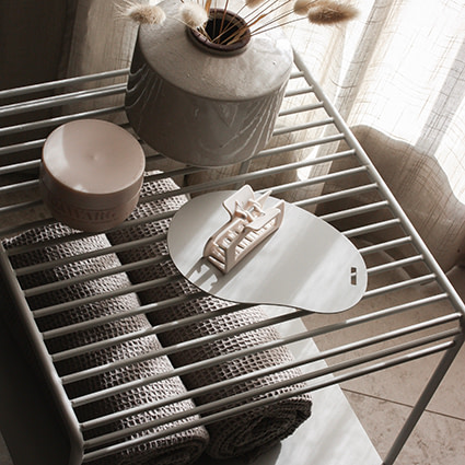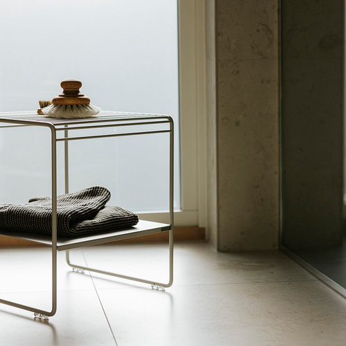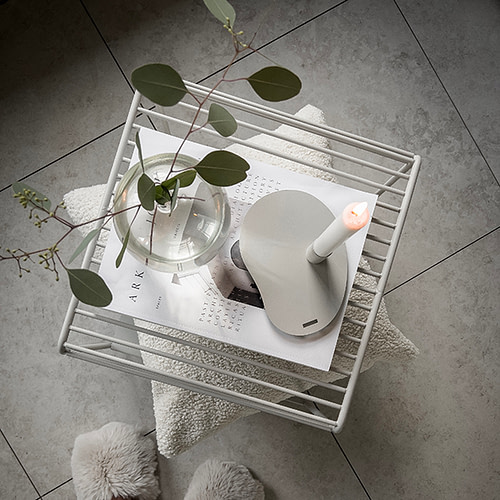 Produkten kan kompletteras med ett hyllplan eller en bordsskiva för extra funktion och ett annat utseende.