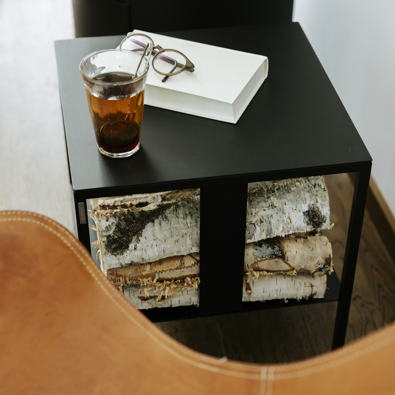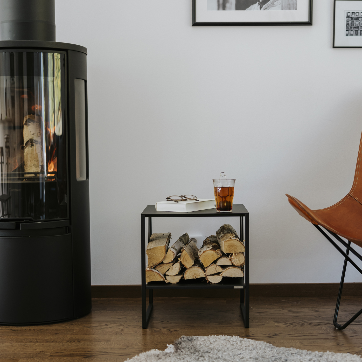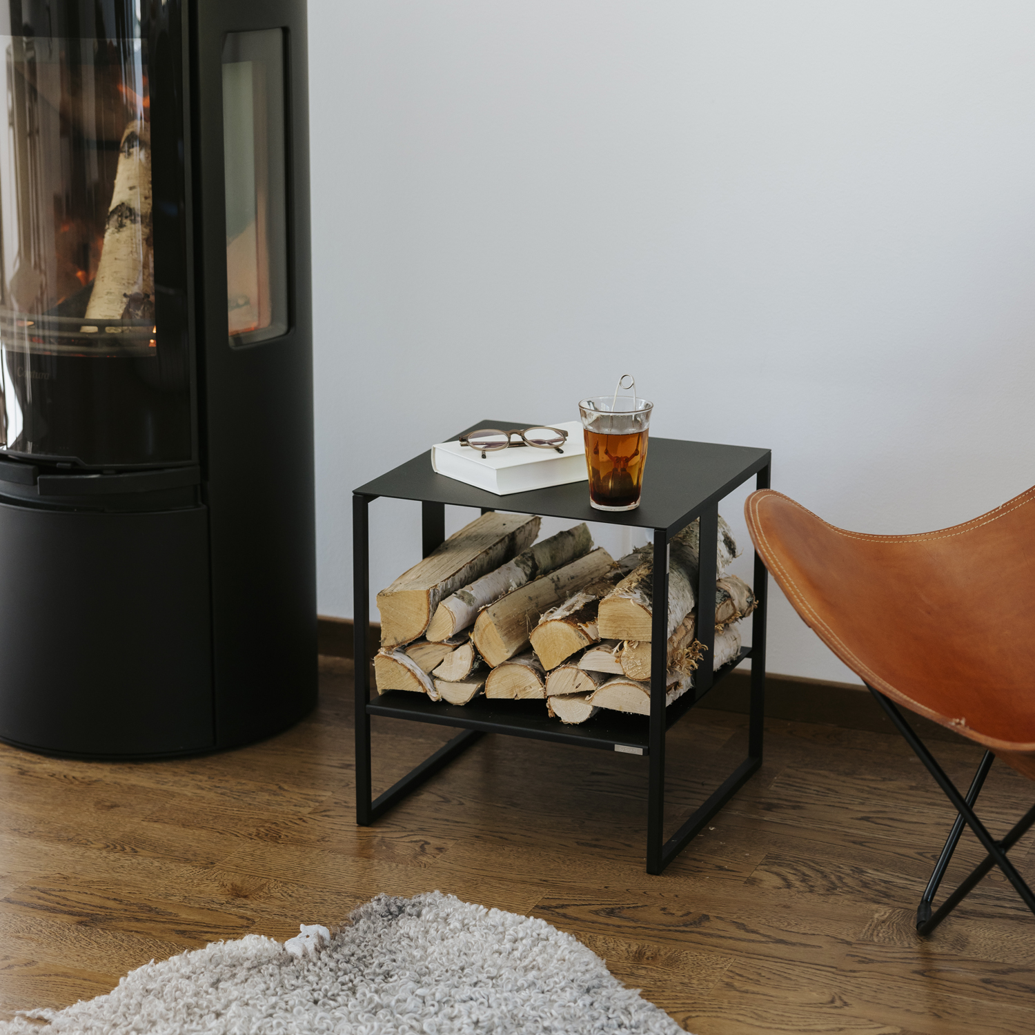 En tidlös möbel med hylla för vedförvaring. Möbeln består av vår omtyckta pall/bord Kloka Karl, 1 st hyllplan samt 1 st vedstöd. Hyllplanet samt vedstödet kan tas bort. Möbeln kan avändas som både bord och sittmöbel.